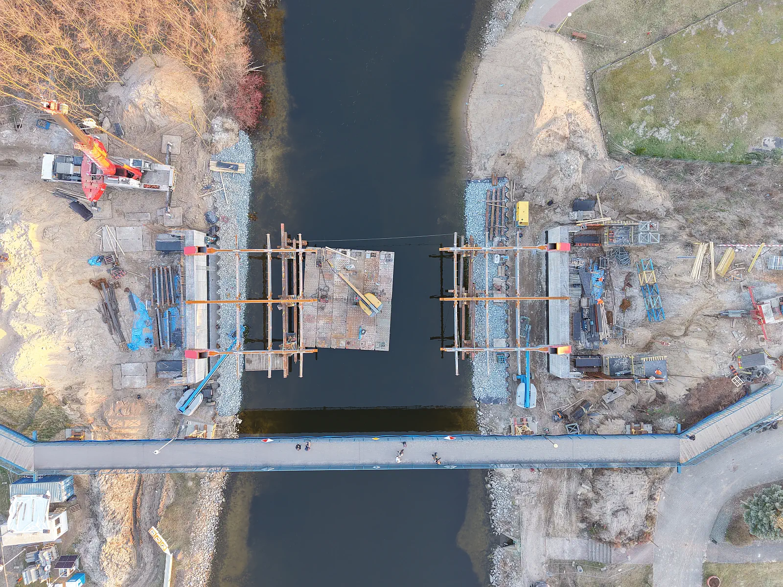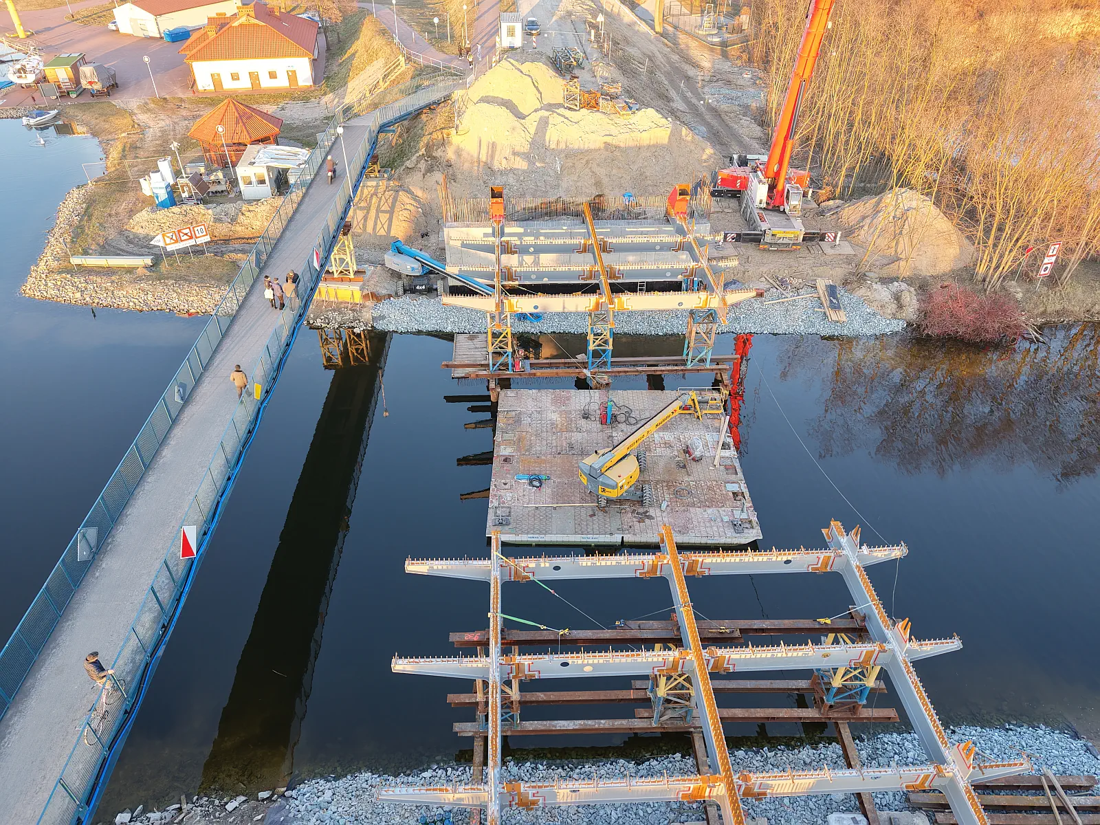 W połowie marca br. przystąpiono do kluczowego etapu – na plac budowy w Ślesinie dostarczono pierwsze elementy konstrukcji stalowej mostu. Początkiem kwietnia zaplanowano dostawę kolejnych części. Ich montaż potrwa kilka tygodni.