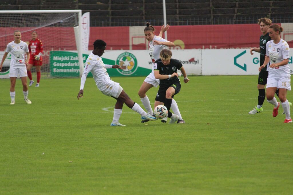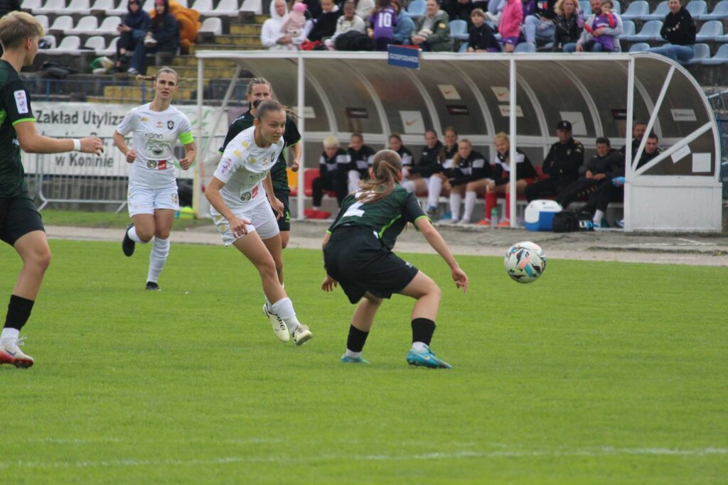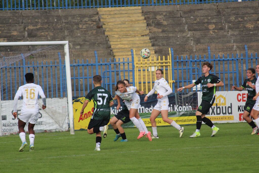 W 32. minucie prowadzenie gospodyniom dała Nina Budzińska. Po przerwie, w 54. minucie, wynik na 2:0 podwyższyła Monika Wziątek. W 83. minucie honorową bramkę dla UKS 3 FAKRO Jelna zdobyła Wiktoria Dudka, jednak to nie zmieniło końcowego rozstrzygnięcia — trzy punkty pozostały w Koninie.