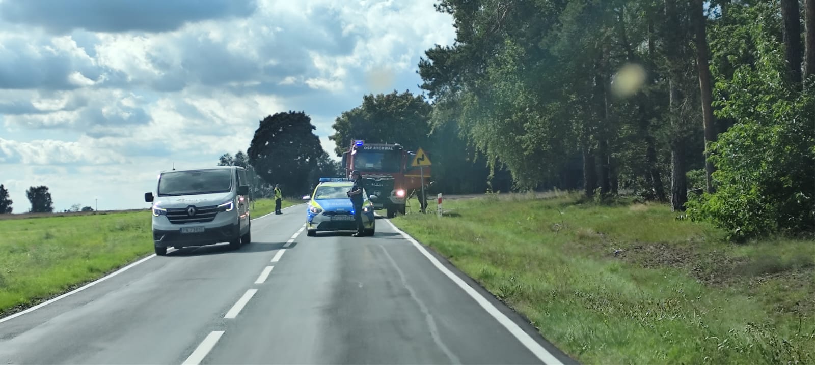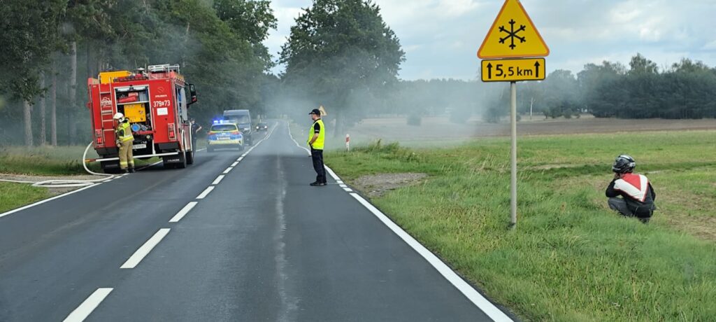 W piątek, 19 września, na drodze wojewódzkiej nr 443 pomiędzy Rychwałem a Tuliszkowem doszło do niebezpiecznego zdarzenia. Motocyklista, jadąc trasą, zauważył ogień w swoim pojeździe. Natychmiast zatrzymał się na pobliskim parkingu przy lesie, by uniknąć większego zagrożenia.