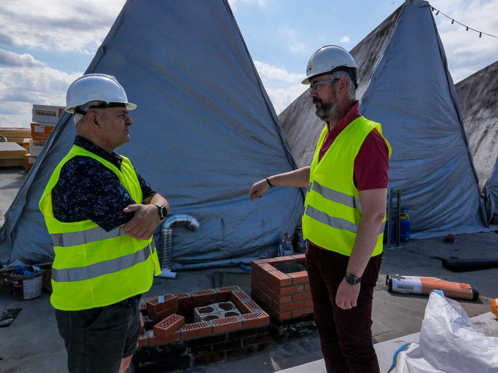 – Musieliśmy zbudować i przebudować od nowa wszystkie kominy i szyby wentylacyjne – tłumaczy kierownik budowy Marek Kużel. – To konieczne rozwiązanie, które zapewni trwałość i bezpieczeństwo na wiele lat.