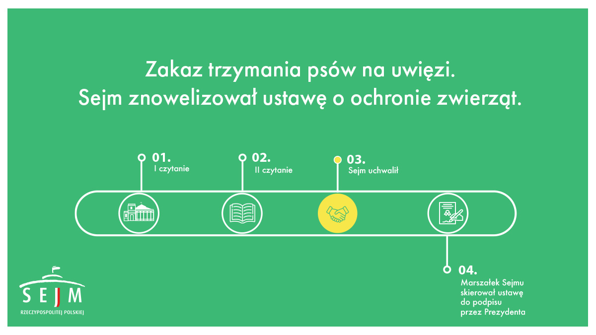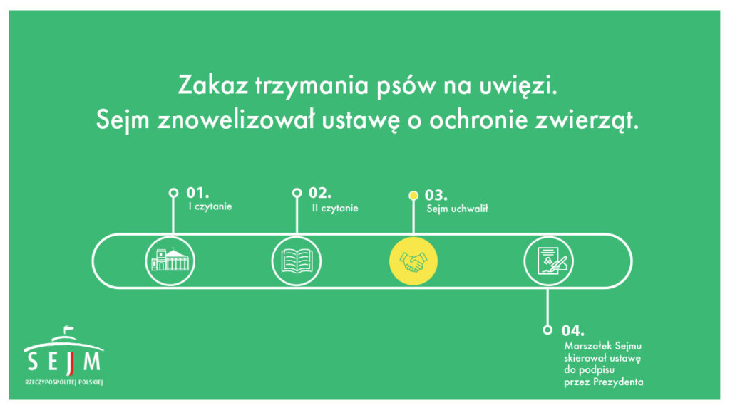Sejm przyjął nowelizację ustawy o ochronie zwierząt, która wprowadza jedną z najbardziej oczekiwanych przez organizacje prozwierzęce zmian — całkowity zakaz trzymania psów na stałym łańcuchu. Równocześnie ustawodawca po raz pierwszy jasno określił minimalne wymagania dotyczące kojców. Zmiany wprowadzone w Sejmie oznaczają istotne przeorientowanie w podejściu do dobrostanu zwierząt domowych w Polsce.