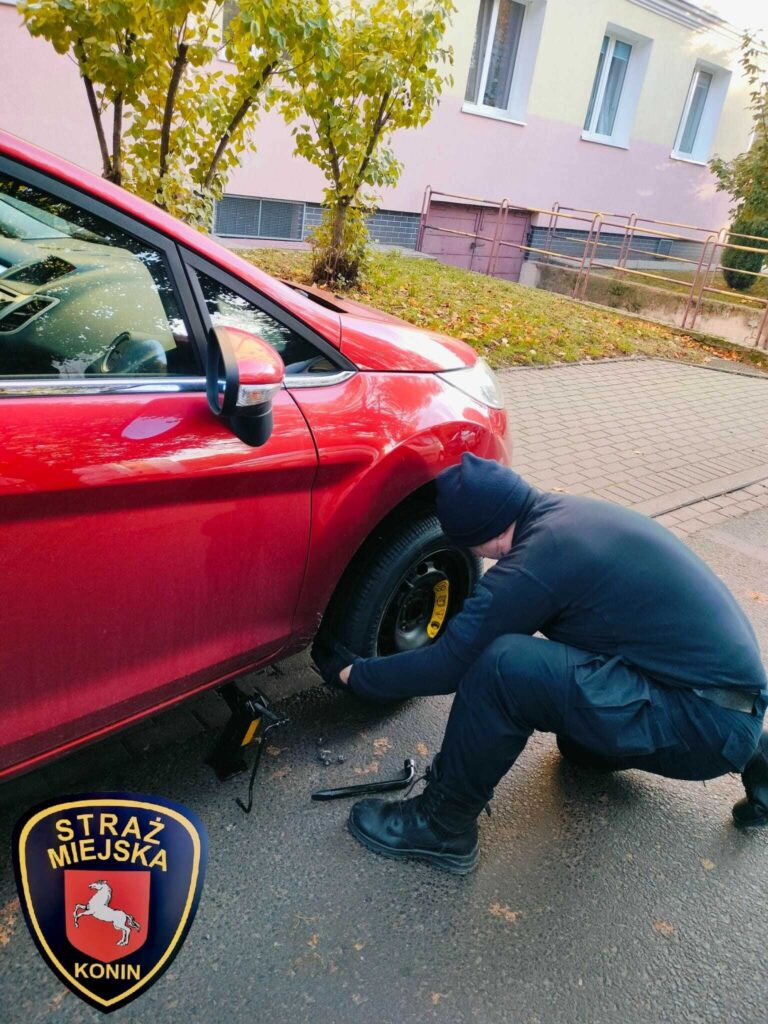 Pomoc na drodze! Dziś rano, w rejonie Placu Górnika, nasz patrol Straży Miejskiej zauważył samochód z przebitą oponą. Kierująca miała problem z wymianą koła, dlatego strażnicy ruszyli z pomocą.