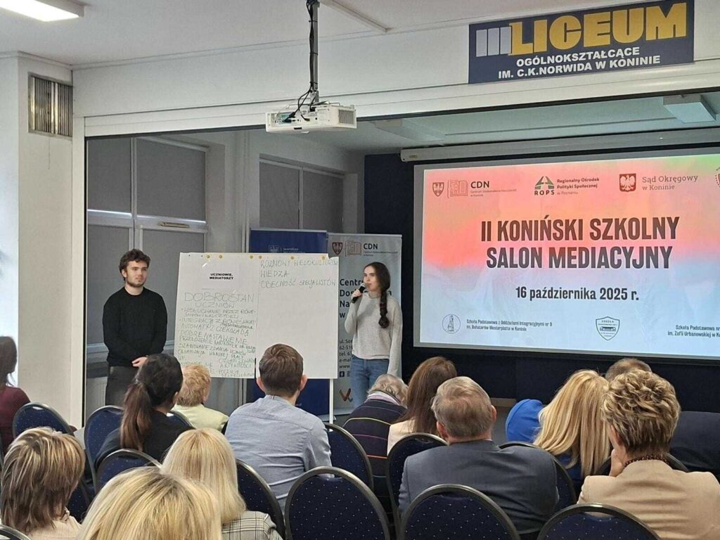 W środę, 16 października, III Liceum Ogólnokształcące im. C.K. Norwida w Koninie stało się przestrzenią rozmowy o tym, co w edukacji najważniejsze – o relacjach, empatii i wzajemnym zrozumieniu. To właśnie tu odbył się II Koniński Szkolny Salon Mediacyjny, wydarzenie skupione na budowaniu środowiska szkolnego sprzyjającego dobrostanowi uczniów i nauczycieli.