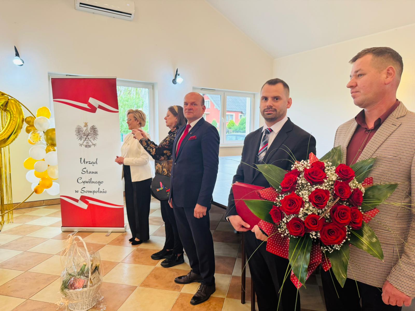 Nie zabrakło także oficjalnych gratulacji i odznaczeń. List Gratulacyjny od Prezydenta RP Karola Nawrockiego odczytał i przekazał Burmistrz Miasta Sompolno Waldemar Marciniak. W imieniu Senatu RP Senator Leszek Galemba wręczył Medalion z wizerunkiem Orła Senatu.