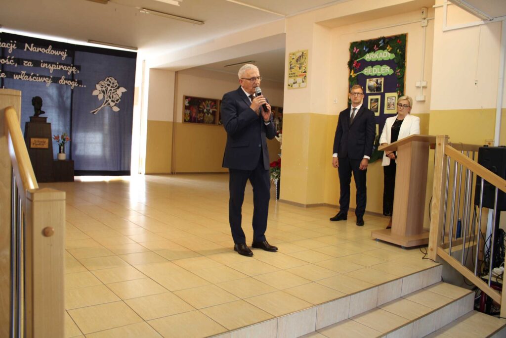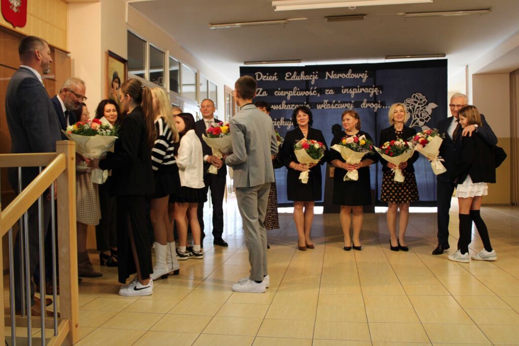 Burmistrz zwrócił uwagę, że mimo wyzwań współczesności, nauczyciele wciąż pozostają autorytetem, a ich praca jest nieoceniona. Wspomniał również o inwestycjach gminy w oświatę – m.in. o trwającej termomodernizacji szkoły o wartości ponad 14 milionów złotych oraz planach modernizacji jej otoczenia.