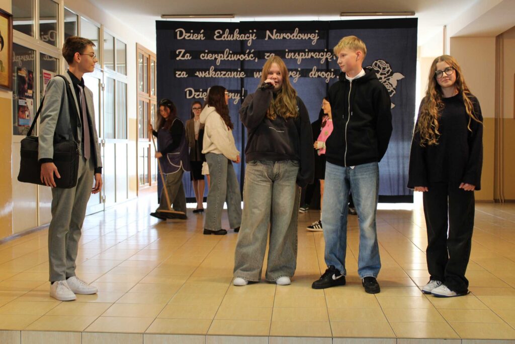Na początku uczniowie w artystyczny sposób przypomnieli, kim jest nauczyciel – ktoś, kto „widzi więcej niż tylko twarze dzieci, kto dostrzega ich duszę” i „trzyma nerwy na wodzy nawet wtedy, gdy inni już by nie potrafili”. Występ uczniów wzbudził szczere wzruszenie, a jego zwieńczeniem było symboliczne wspomnienie zmarłych nauczycieli i pracowników oświaty, których nazwiska odczytano w skupieniu i z szacunkiem.