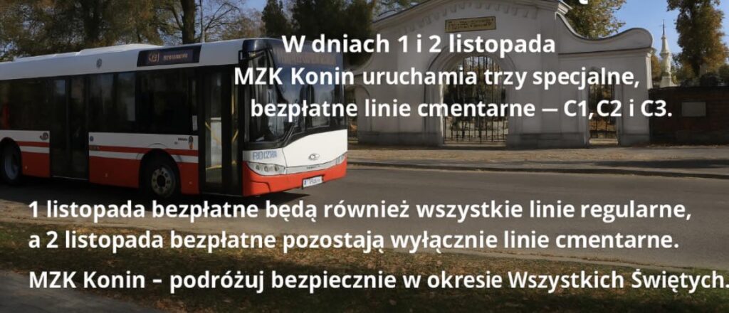 Jak co roku w okresie Wszystkich Świętych, Miejski Zakład Komunikacji w Koninie wprowadza specjalną organizację ruchu i uruchamia dodatkowe linie autobusowe, aby ułatwić mieszkańcom dojazd na groby bliskich. Warto wcześniej zapoznać się z rozkładem jazdy i zmianami w komunikacji miejskiej.