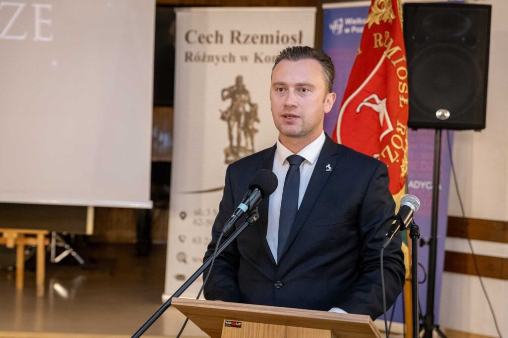 W imieniu samorządu Rychwała gratulacje młodym rzemieślnikom złożył burmistrz Stefan Dziamara, podkreślając znaczenie nauki zawodu i roli lokalnych firm w kształceniu przyszłych specjalistów.