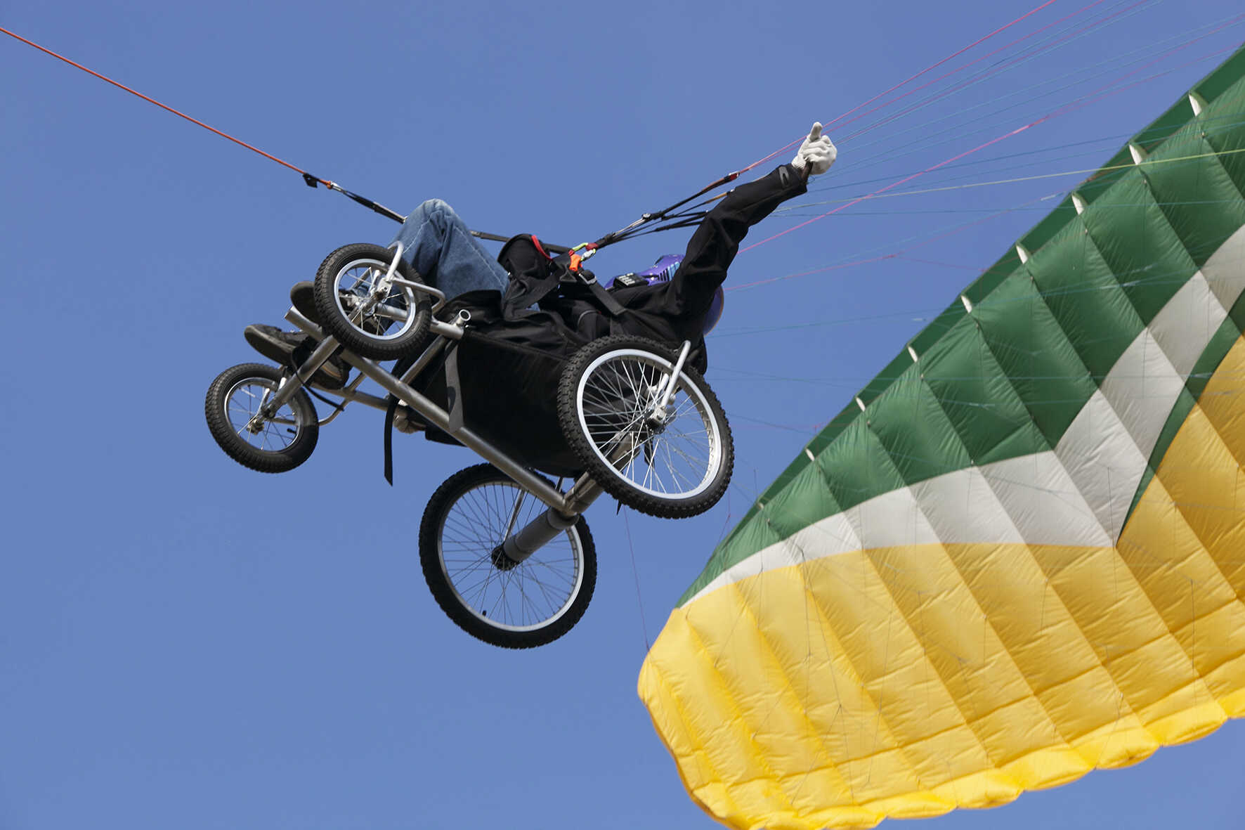 Michał ma mózgowe porażenie dziecięce i porusza się na wózku elektrycznym. Pomocy potrzebuje w wielu codziennych czynnościach, ale w powietrzu… czuje się wolny.
