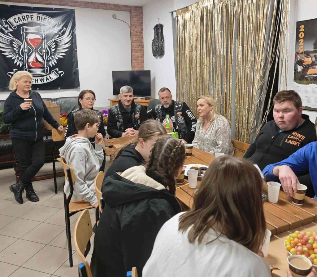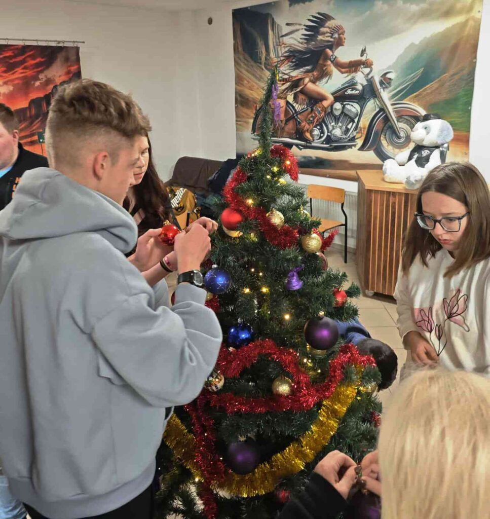 Spotkanie zaczęło się od wspólnego ubierania choinki, która od teraz rozświetla siedzibę motocyklistów i symbolicznie otwiera świąteczny czas. Jak mówią członkowie Carpe Diem, choinka to nie tylko dekoracja – to znak życzliwości, otwartości i integracji, o którą grupa stara się regularnie dbać.
