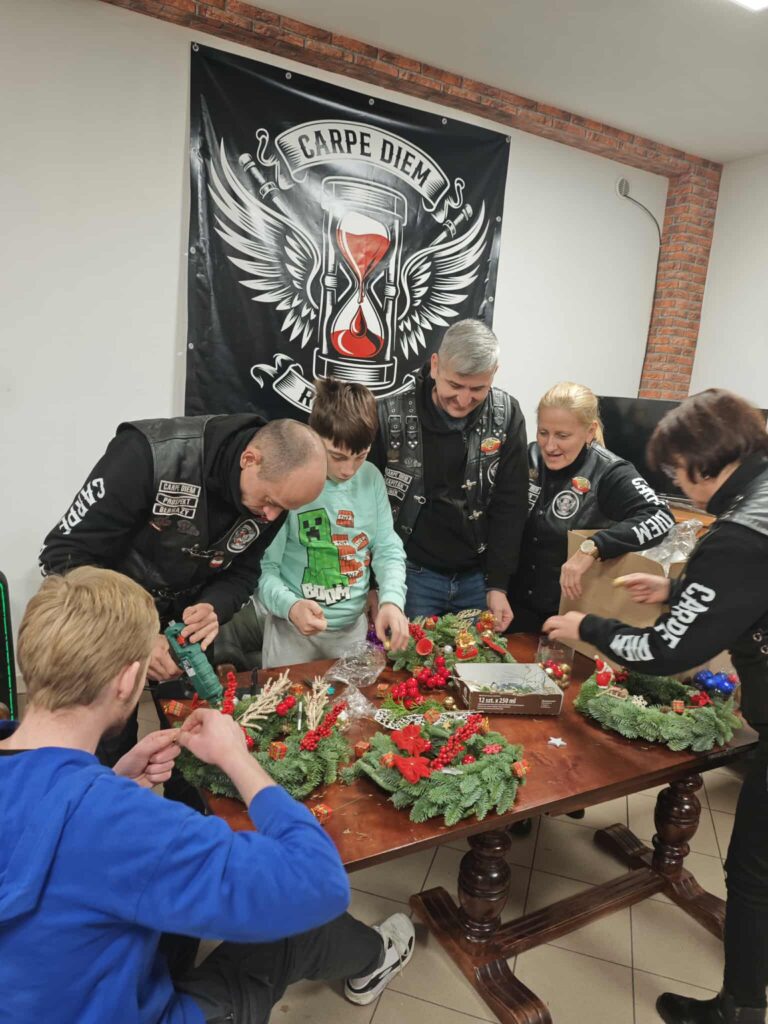 Radość, świąteczne stroiki i wspólne chwile. Podopieczni SOSW w Rychwale odwiedzili Grupę Motocyklową Carpe Diem