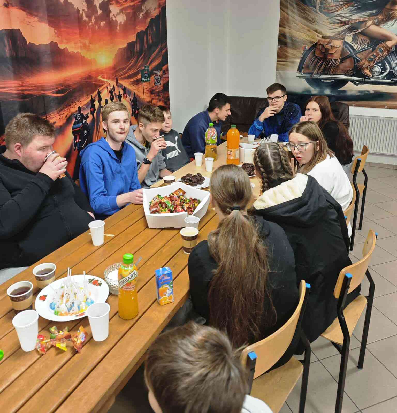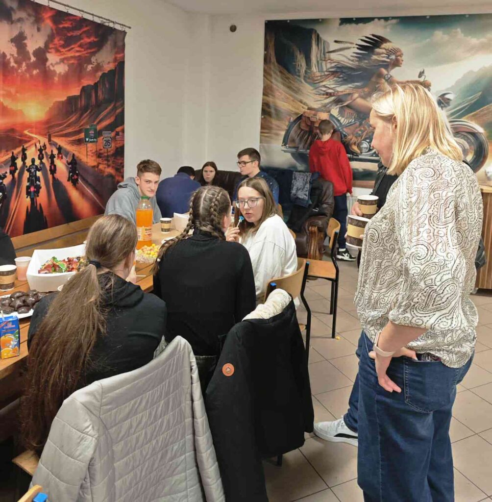 Po kreatywnej pracy przyszedł czas na rozmowy i integrację. Wspólny poczęstunek stał się okazją do spokojnych, ciepłych pogawędek, które – jak relacjonują gospodarze – były równie ważne jak tworzenie świątecznych ozdób.