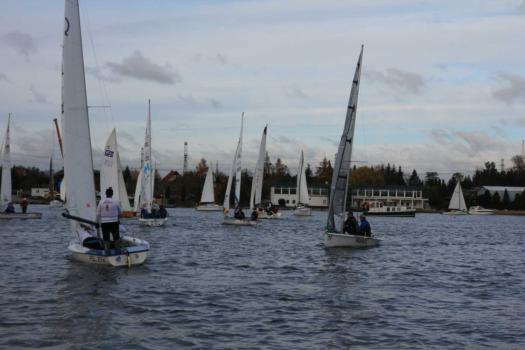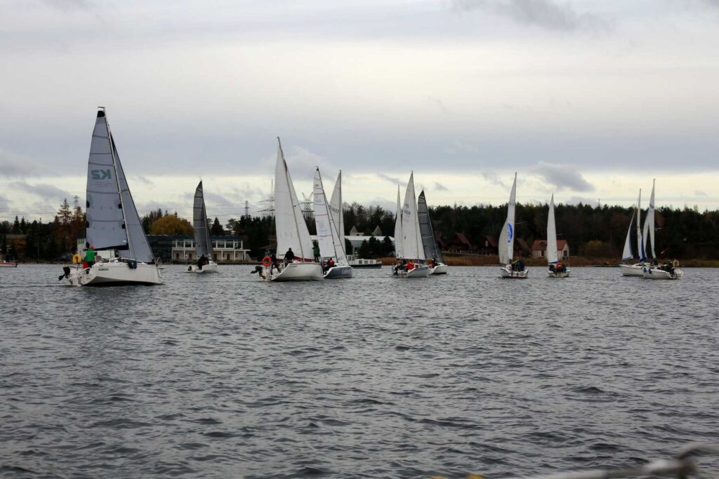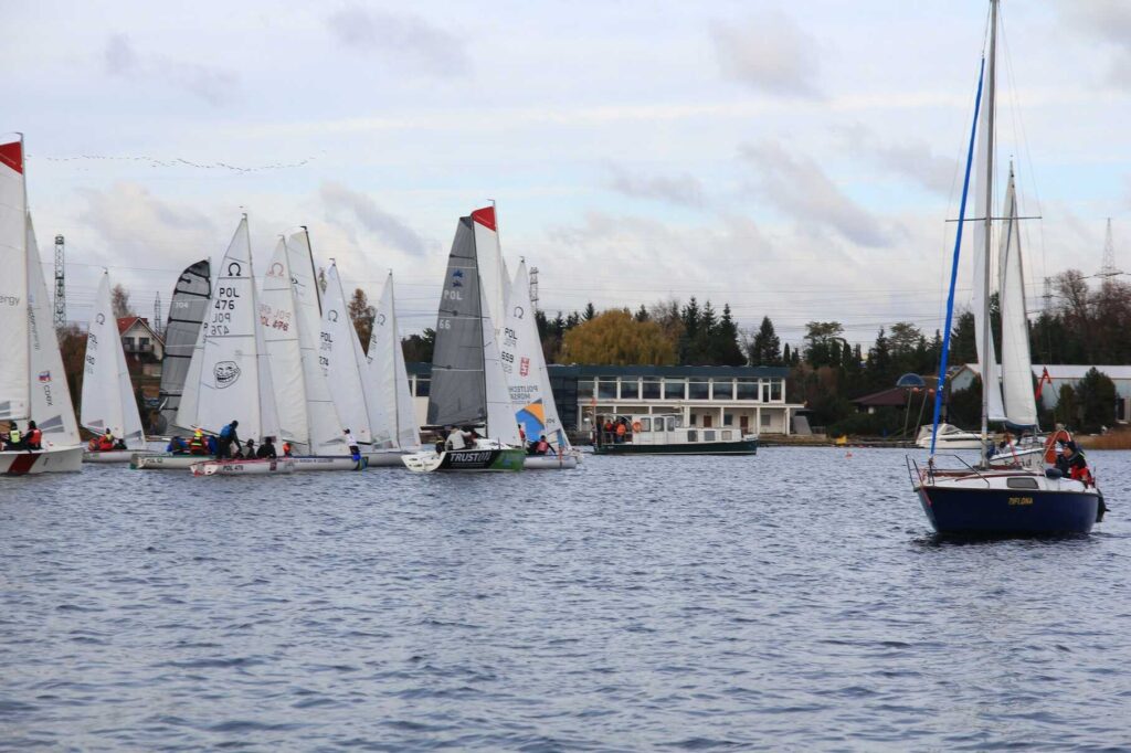 Mimo listopadowej pory, warunki do żeglowania okazały się zaskakująco sprzyjające – lekko zachmurzone niebo, temperatura sięgająca 9–10°C i wschodni wiatr o sile 1–2° w skali Beauforta pozwoliły na przeprowadzenie emocjonujących biegów.