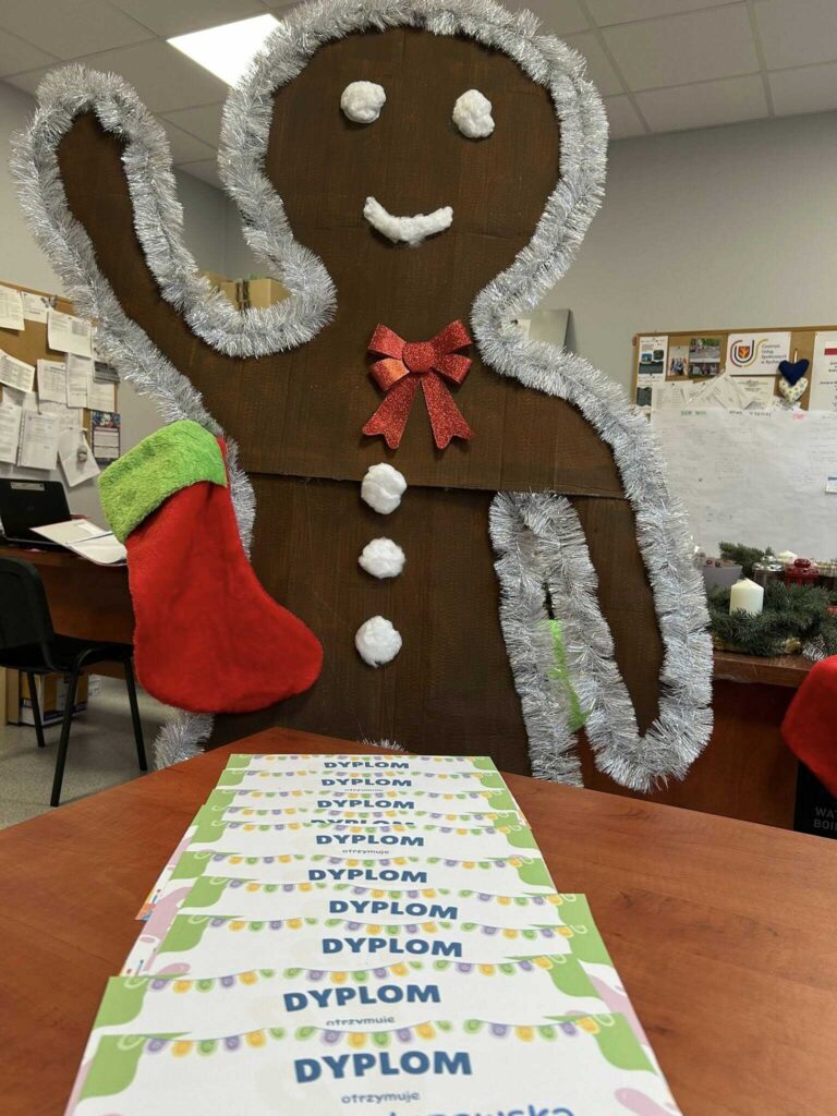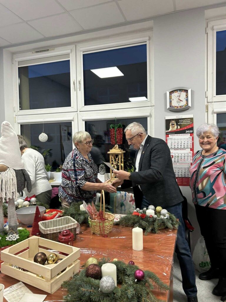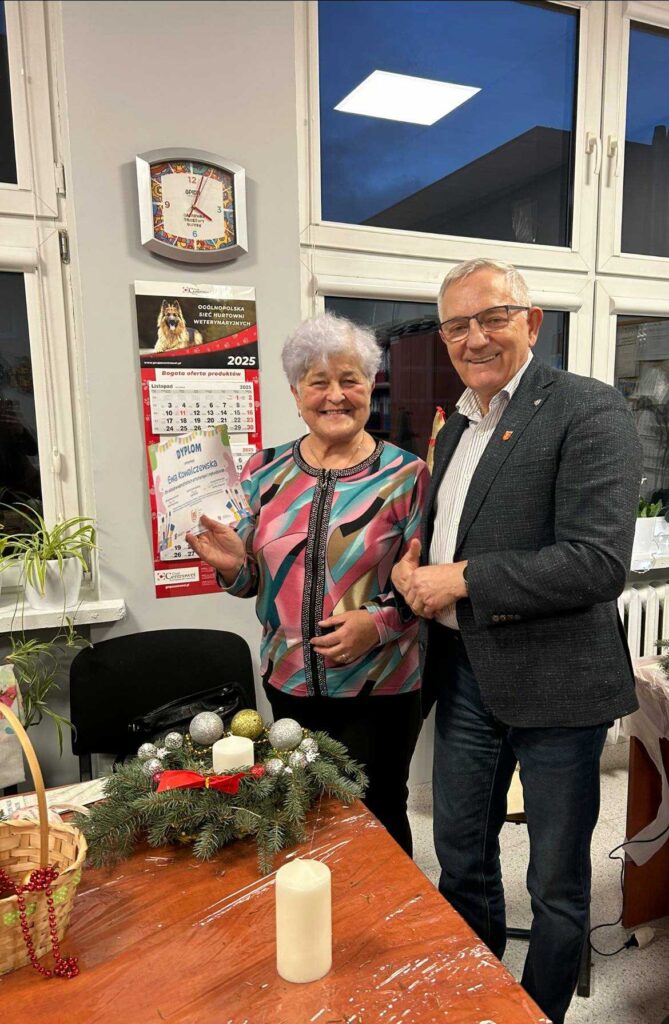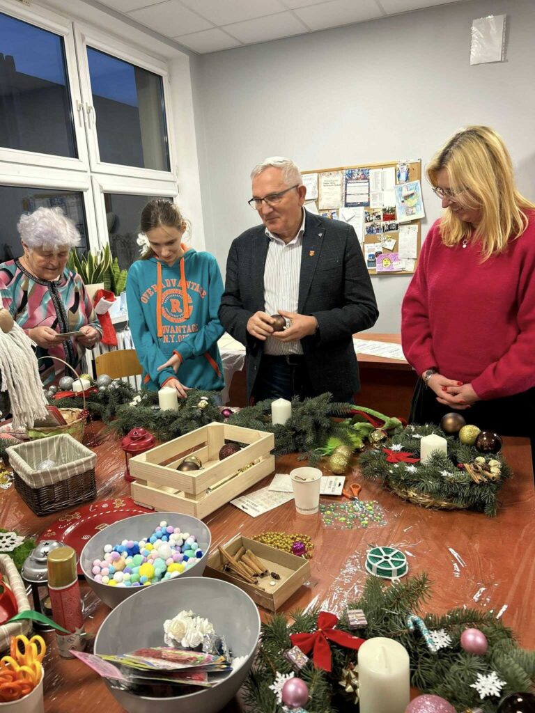 Świąteczne spotkanie zamykające zajęcia pierwszej grupy miało wyjątkową oprawę. Uczestników odwiedzili Burmistrz Rychwała Stefan Dziamara oraz jego zastępczyni Ewa Jędrzejczak. Władze gminy osobiście wręczyły dyplomy i podziękowania, podkreślając, że rozwój usług społecznych jest jednym z priorytetów samorządu.