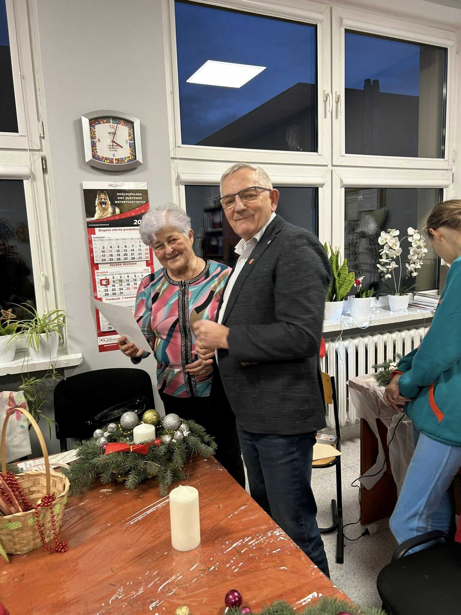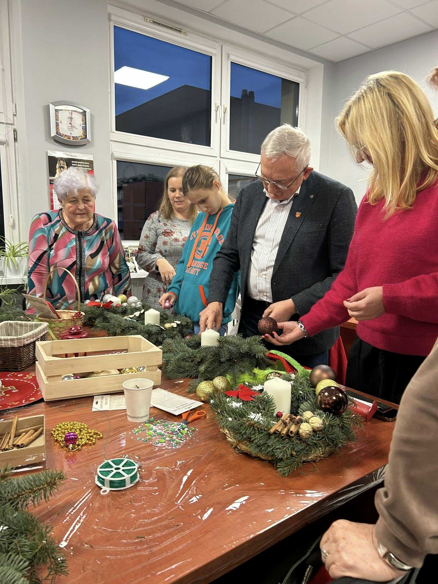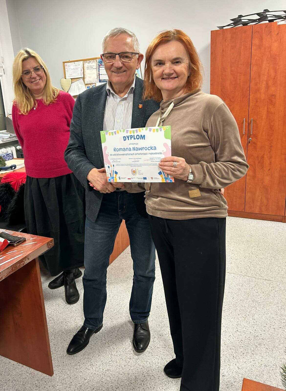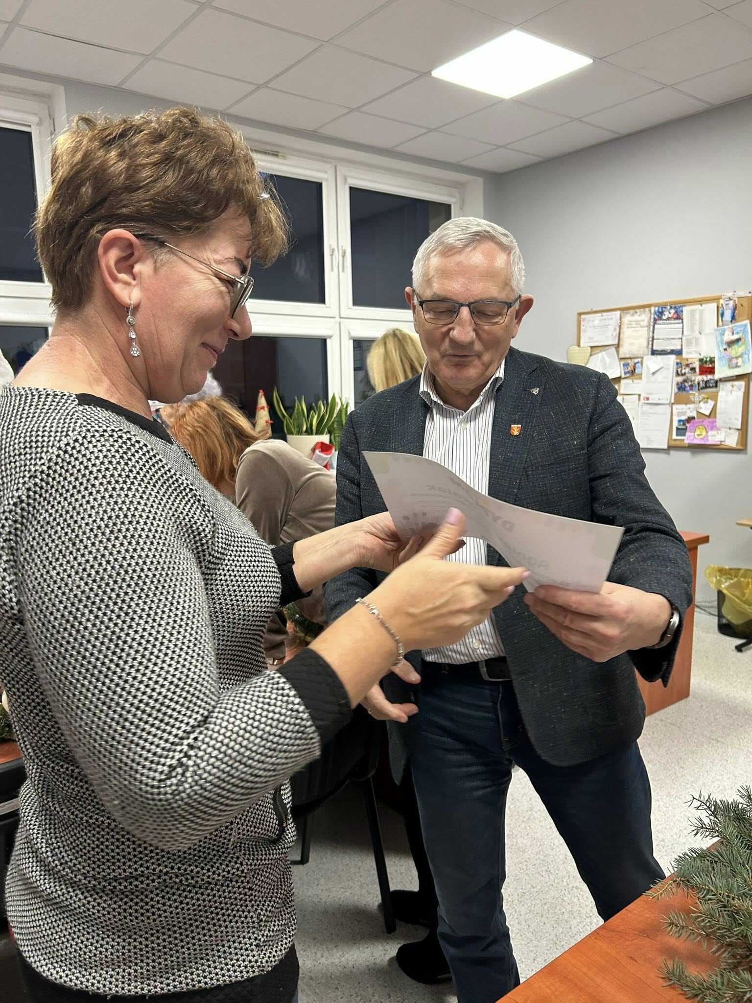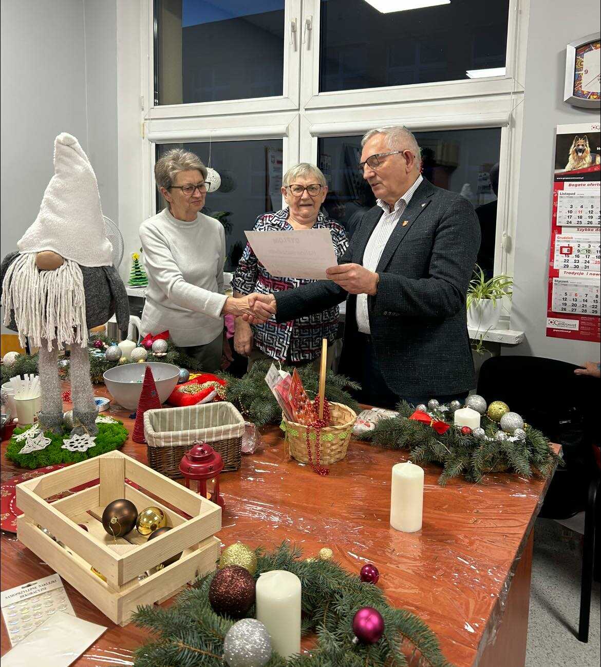 Świąteczne spotkanie zamykające zajęcia pierwszej grupy miało wyjątkową oprawę. Uczestników odwiedzili Burmistrz Rychwała Stefan Dziamara oraz jego zastępczyni Ewa Jędrzejczak. Władze gminy osobiście wręczyły dyplomy i podziękowania, podkreślając, że rozwój usług społecznych jest jednym z priorytetów samorządu.
