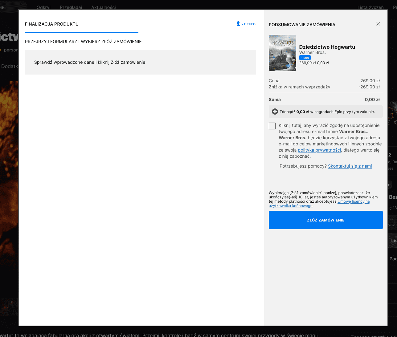 Nie jest wymagane wpisywanie danych płatniczych czy żadne inne formalności – wszystko odbywa się tak, jak w przypadku standardowych darmowych ofert Epic.
