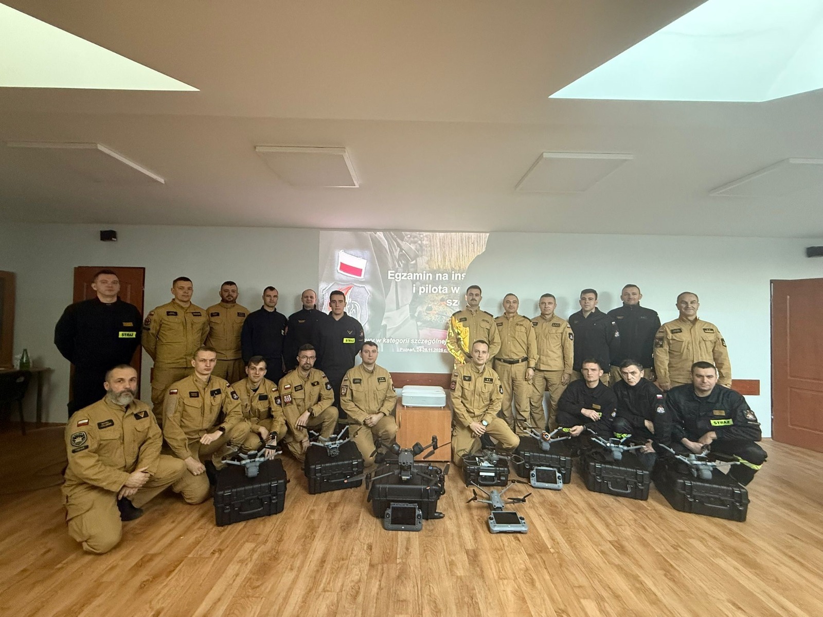 Zwieńczeniem szkolenia był egzamin przeprowadzony przez kpt. Marcina Klecza, krajowego koordynatora PSP ds. BSP. Wykorzystywany sprzęt udostępnił Ośrodek Szkolenia KW PSP w Poznaniu, a całe przedsięwzięcie odbyło się w ramach dronowego ośrodka funkcjonującego przy Komendzie Głównej PSP.