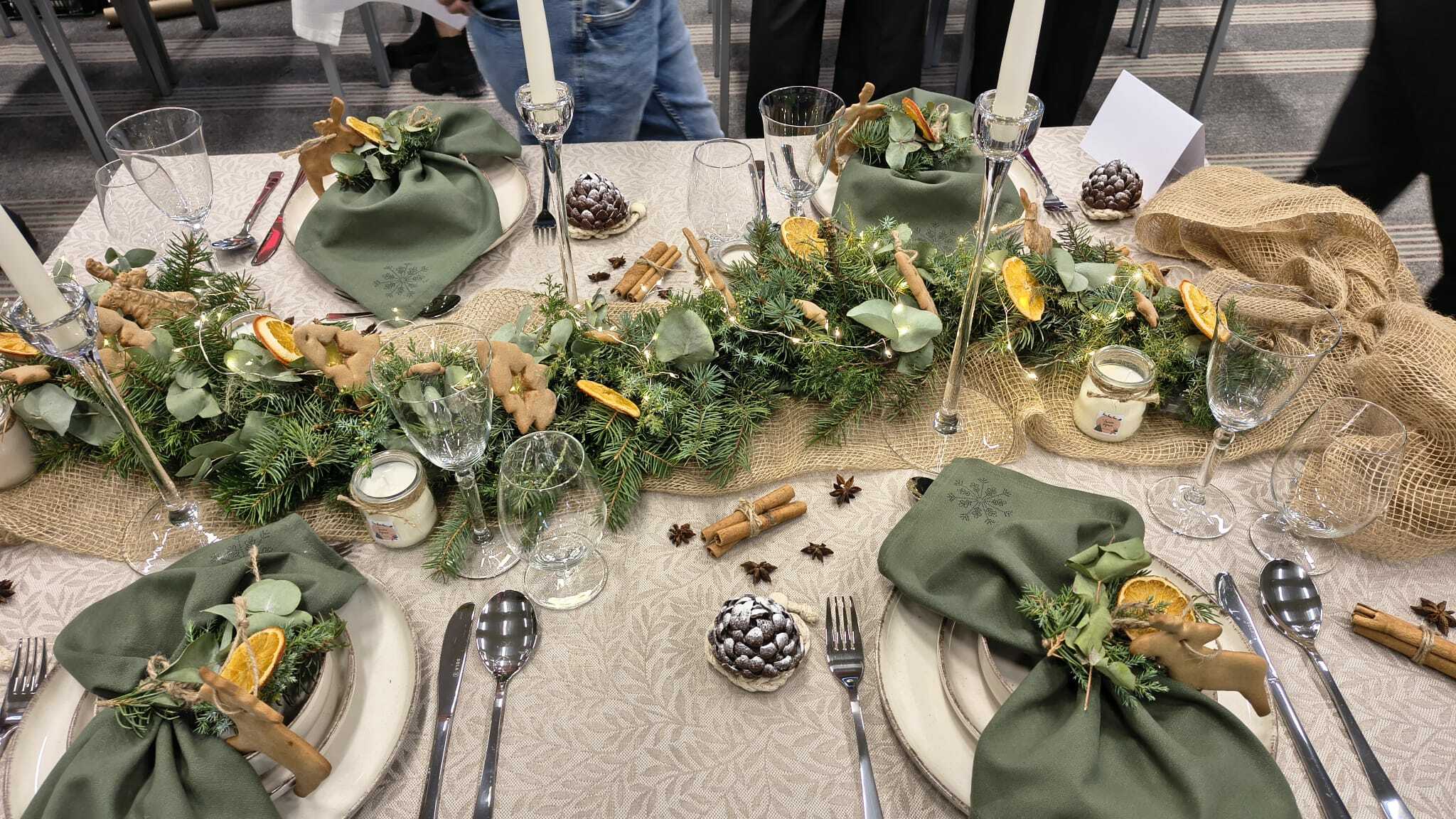 Motywem przewodnim wojewódzkiego konkursu stołów były w tym roku „Piernikowe święta od kuchni”. Uczniowie zaprezentowali niezwykle dopracowane kompozycje, w których dominowały naturalne elementy – igliwie, świąteczne dodatki oraz misternie wykonane dekoracje z piernika. Stoły zachwycały estetyką, pomysłowością i dbałością o detale, przyciągając uwagę zarówno jurorów, jak i licznie zgromadzonej publiczności.