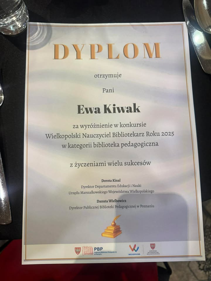 Uhonorowana została także Ewa Kiwak, kierownik Filii w Turku, doceniona za ogromną pasję, konsekwencję i profesjonalizm w pracy z czytelnikami. Przyznane wyróżnienie jest nie tylko zaszczytem, lecz także potwierdzeniem, że lokalne biblioteki – dzięki ludziom takim jak pani Ewa – pozostają miejscem kultury, spotkań i autentycznych inspiracji.