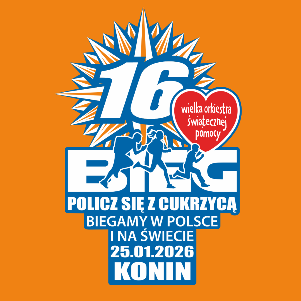 Koniński Sztab Wielkiej Orkiestry Świątecznej Pomocy przy CKiS w Koninie oraz Klub Biegacza Aktywni Konin ogłaszają rozpoczęcie zapisów na 16. edycję Biegu „Policz się z cukrzycą”, organizowaną w ramach 34. Finału WOŚP. Wydarzenie odbędzie się 25 stycznia 2026 r. o godz. 13.00, a jego start i meta zlokalizowane będą na parkingu C.H. Galeria nad Jeziorem.