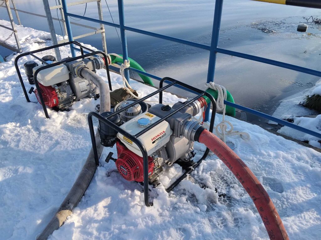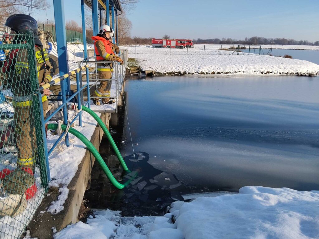 Strażacy trenowali działania przeciwpowodziowe przy przepompowni Nizina Konińska