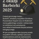 - Barbórka 2025 – życzenia dla Górników!Z okazji górniczego święta – Barbórki, składamy wszystkim Górnikom, Pracownikom Kopalni oraz ich Rodzinom wyrazy głębokiego uznania i wdzięczności za codzienny trud, poświęcenie oraz wkład w budowanie bezpieczeństwa energetycznego. W tym szczególnym dniu życzymy przede wszystkim zdrowia, spokoju i poczucia bezpieczeństwa podczas wykonywania odpowiedzialnej pracy. Niech spełnią się wszystkie zawodowe… Dowiedz się więcej: Barbórka 2025 – życzenia dla Górników!